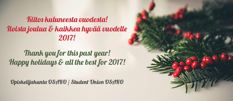 Opiskelijakunta OSAKO toivottaa hyvää joulua // Season's greetings from Student Union OSAKO