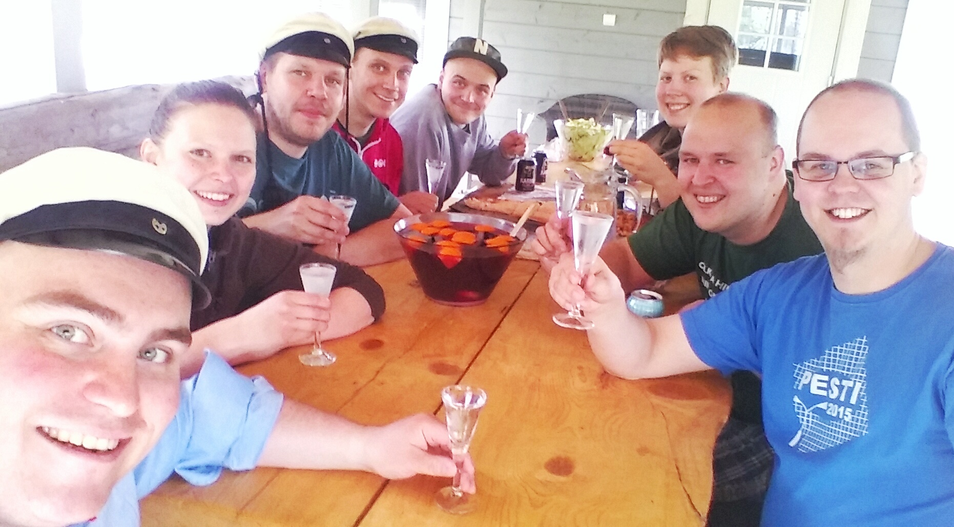 T: Kalle, Pasi, Annemari, V-P, Matti, Jussi, Antti ja Jenni.