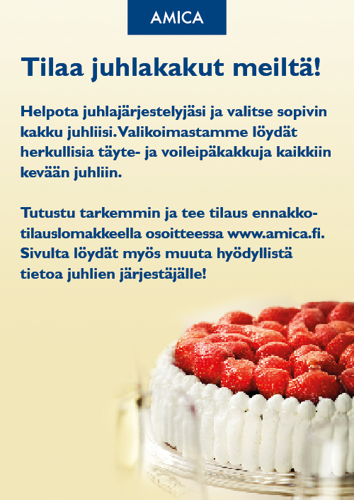 teemme tilauksesta kevään ja kesän juhliin täyte/voileipäkakkuja. Ohessa ennakkovarauslomake.