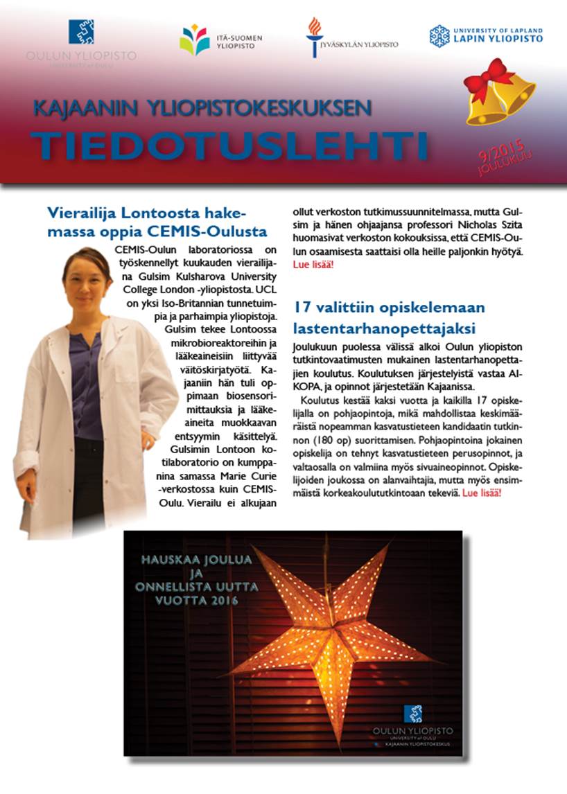 [Kyk] [Kyk-viestinta] Kajaanin yliopistokeskuksen tiedotuslehti joulukuu 2015