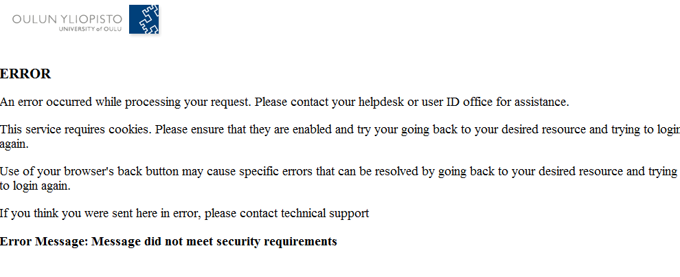 Hei, Tällä hetkellä on ongelmia Personec ESS:iin kirjautumisessa. Kirjautuminen ei siis onnistu ollenkaan kun tulee virheilmoitus. Ongelma johtunee ehkä tiistai-iltaisista tietohallinnon tekemistä päivityksistä. Ongelmaa selvitellään parhaillaan. Virheilmoitus on alla olevan näköinen: [cid:Image0]