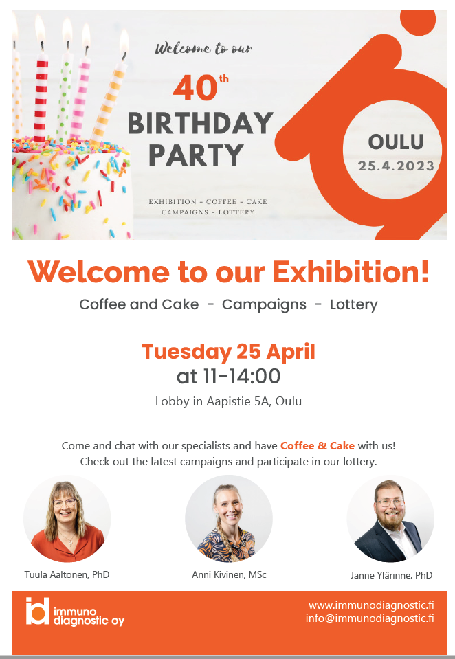 Immunon 40v synttärinäyttely Oulussa TI 25.4 klo 11-14.00