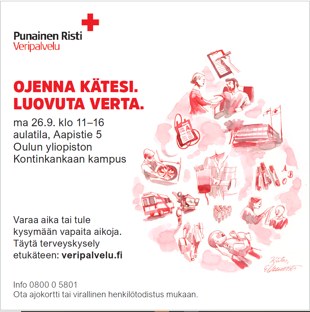Punaisen Ristin veripalvelu ma 26.9.2022 klo 11-16 Aapistie 5A aulassa