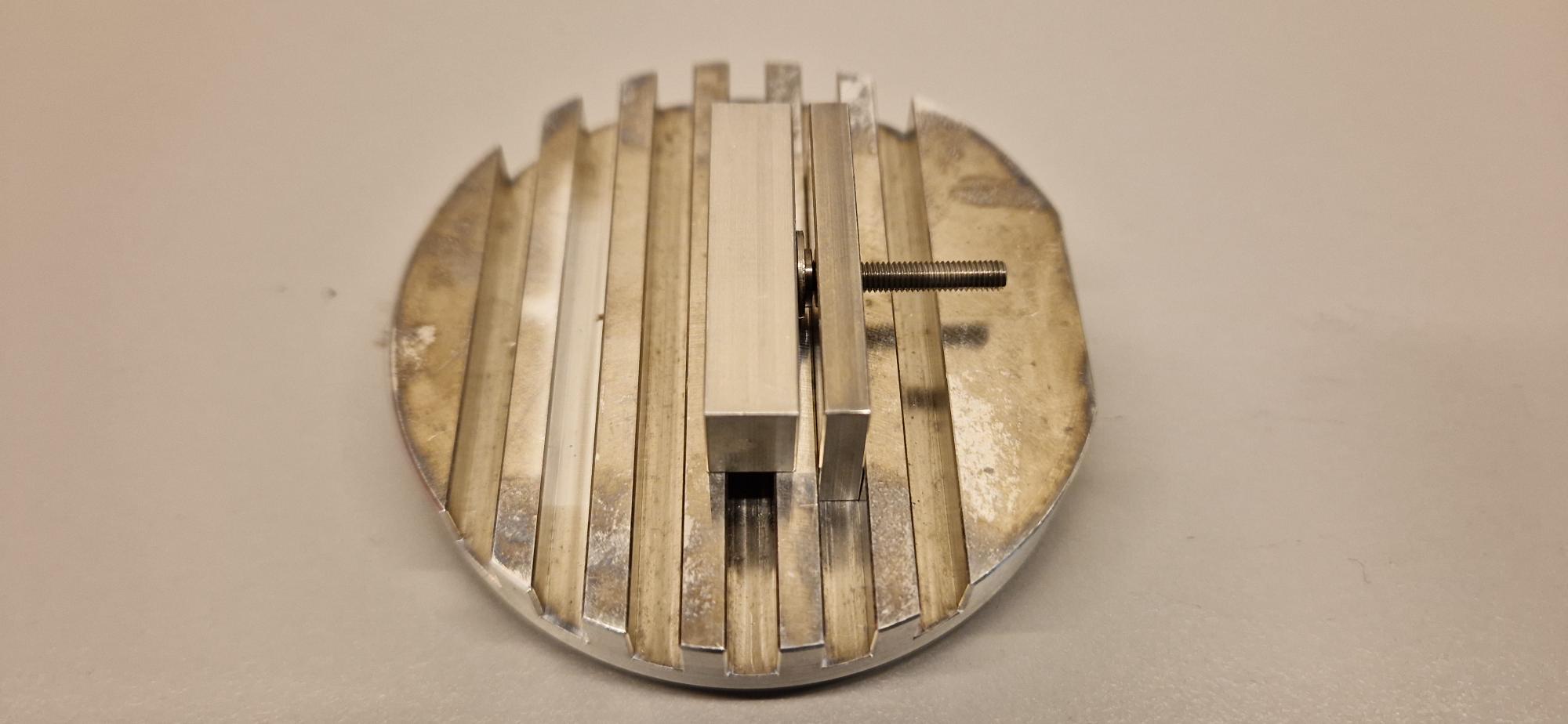 I noticed yesterday that a part is missing from one of the SEM holders (see attached image). A narrow metal slab that fits into the grooves of a base plate and is attached on the opposite side of the wider slab is missing. If you have taken that part to your lab to attach your samples on it, please return it to the SEM room. Holder cannot be used without that part. One small ball end hex screwdriver (image below) from the SEM room is also missing and I would like to have it back. Check your lab bench!