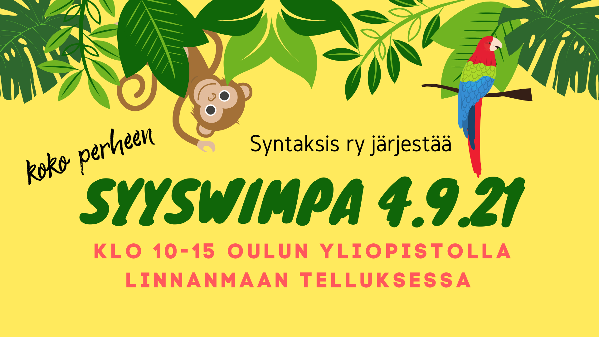 Koko perheen Syys-Wimpa lauantaina 4.9. klo 9-16 Linnanmaan Telluksessa // Syys-Wimpa on Saturday 4.9. at 9-16 in Linnanmaa Tellus
