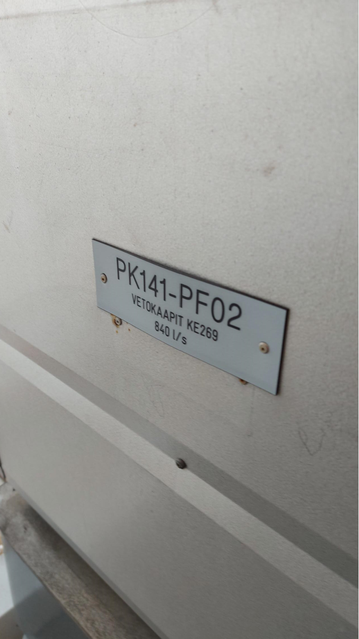 -Katolla sijaitsevien erillispuhaltimien katkos tullaan tekemään (alustavasti) viikolla 43. Tästä tulee urakoitsijalta erillinen tiedote. Katkos kyseisten laitteiden ilmanvaihdossa kestää yhden vuorokauden. Alla vielä kuvat huippuimureiden laitekylteistä, joista ilmenee laitteiden palvelualueet. Pohjakuvaan merkattu vihreällä laitteet joita ko. erillispuhaltimet palvelevat.