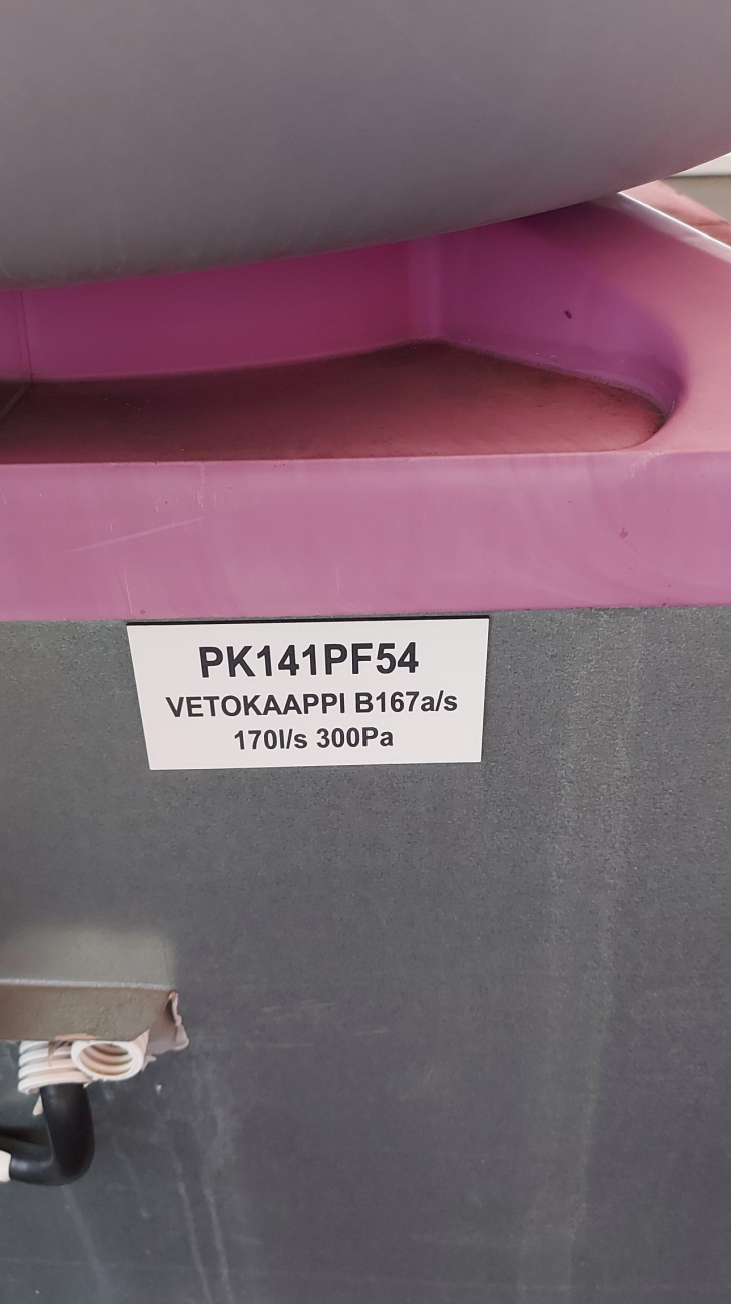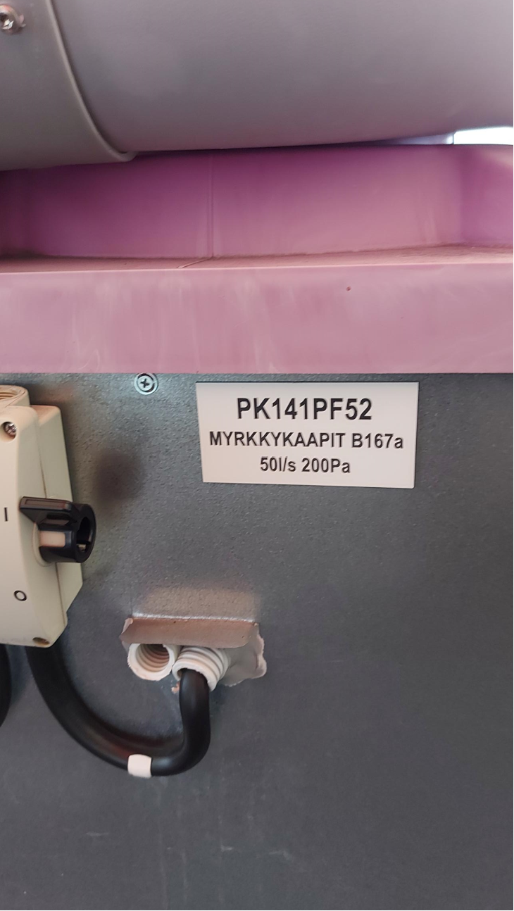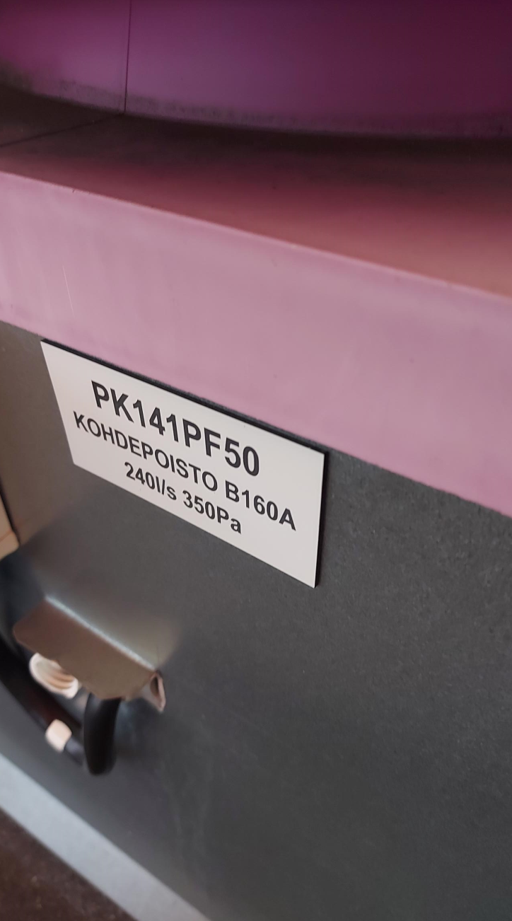 Alla vielä kuvat huippuimureiden laitekylteistä, joista ilmenee laitteiden palvelualueet. Pohjakuvaan merkattu vihreällä laitteet joita ko. erillispuhaltimet palvelevat.