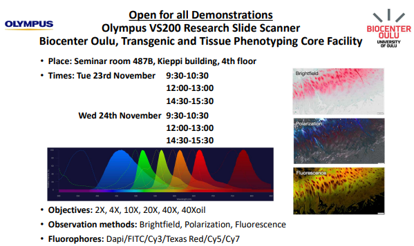 Fluorescence microscope demonstrations (Leica and Olympus)