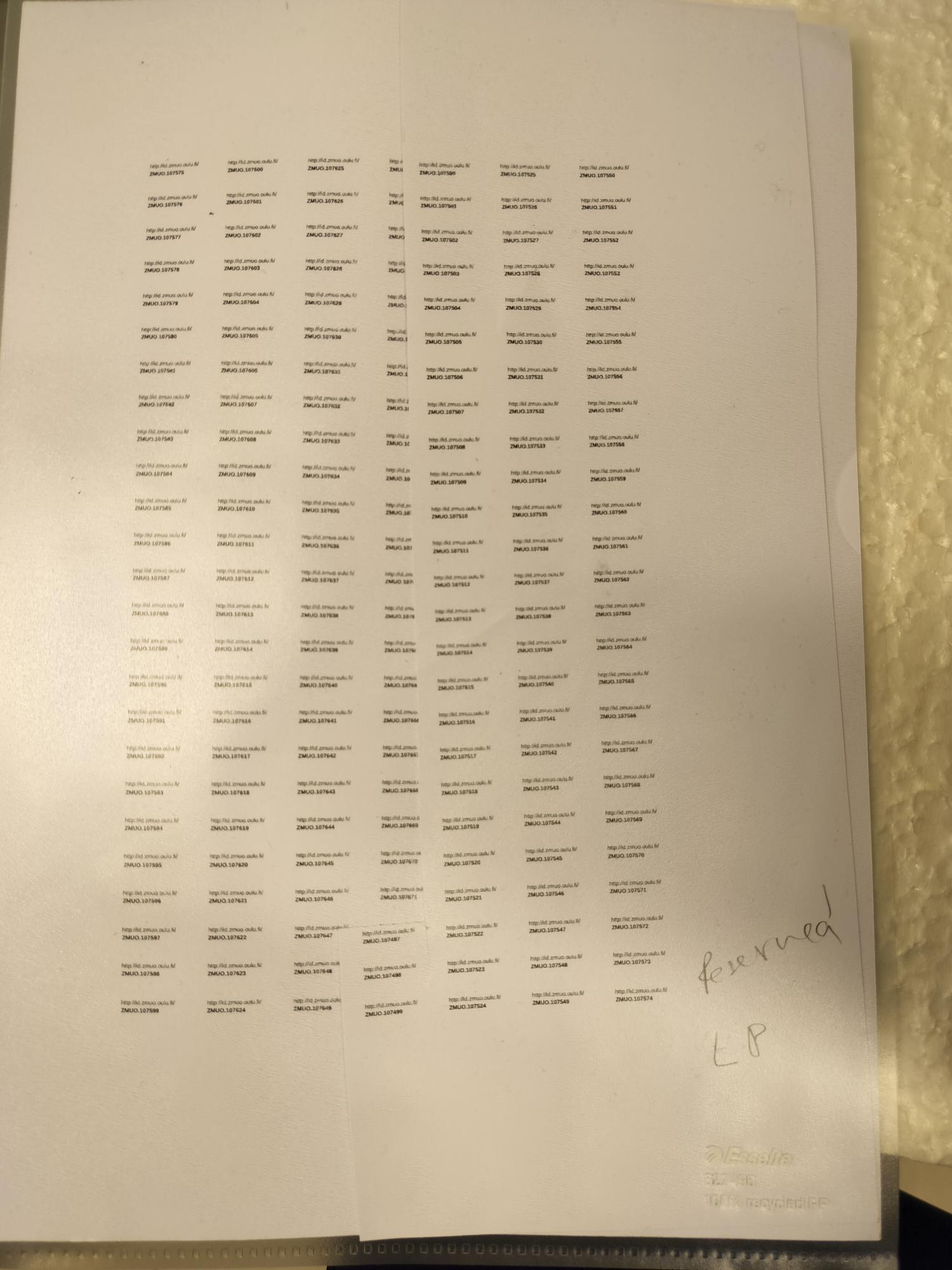 Someone using initials LP has reserved many museum labels, see the attached picture. I could not find anyone who could be LP among our staff. If you know something about this, please let me know.