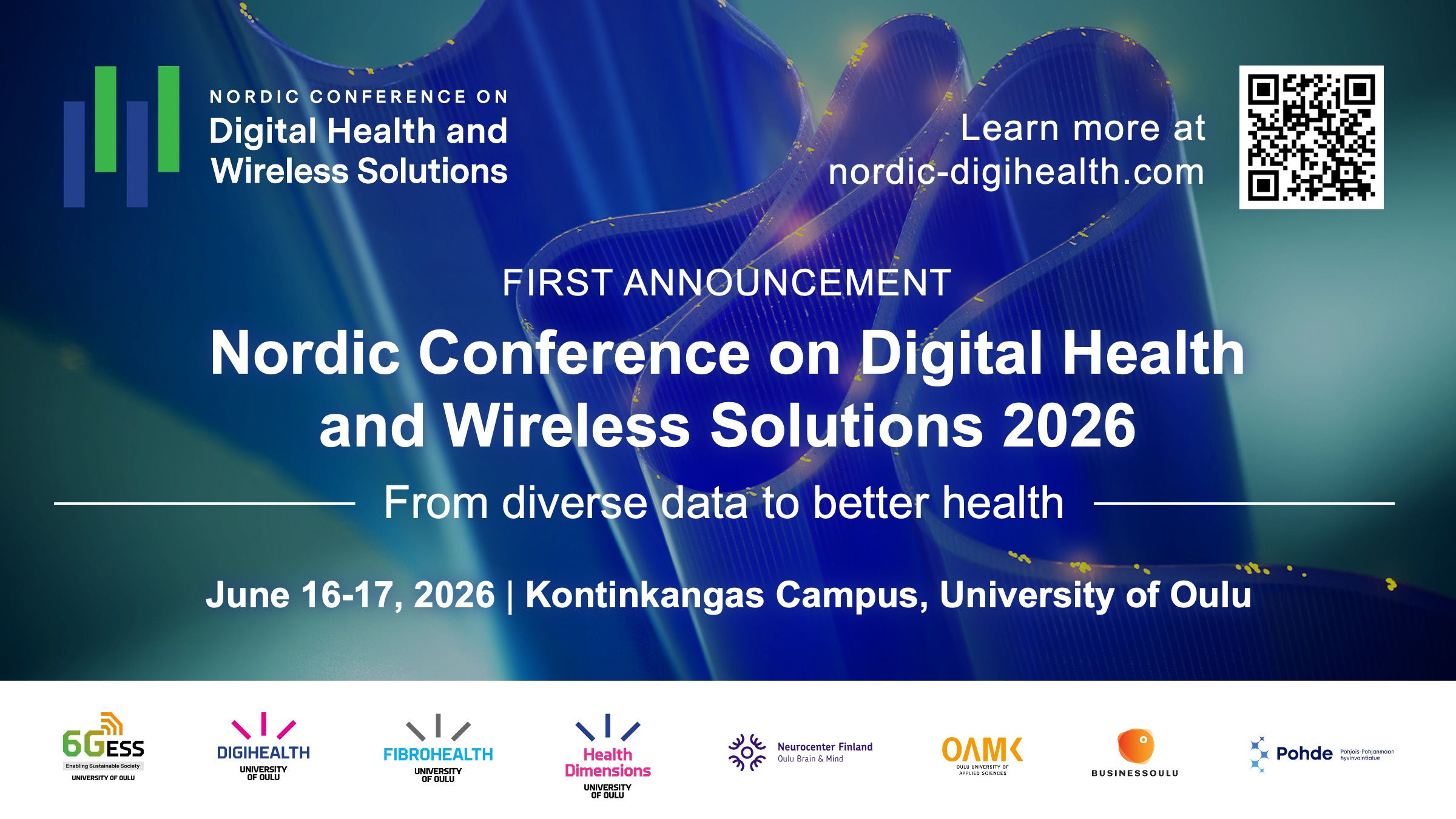 The multidisciplinary conference is organised by the University of Oulu programmes 6GESShttps://www.6gflagship.com/6gess/ and DigiHealthhttps://www.oulu.fi/en/research/creating-better-health-our-digital-health-knowhow, in collaboration with Profi6-Fibrobesityhttps://www.oulu.fi/en/research/fibrohealth-combatting-fibrosis-chronic-diseases/fibrobesity, Profi8-Health Dimensionshttps://www.oulu.fi/en/research/multidimensional-big-data-and-life-course-health-molecules-society-health-dimensions, Oulu Brain & Mindhttps://www.oulu.fi/en/university/faculties-and-units/faculty-medicine/oulu-brain-mind, and regional partners OAMKhttps://www.oamk.fi/en/, Oulu University Hospital, Pohdehttps://pohde.fi/en/front-page/, and BusinessOuluhttps://www.businessoulu.com/en/. The event brings together researchers, clinicians, engineers, and industry leaders to explore how digital health and wireless innovations can transform healthcare systems.