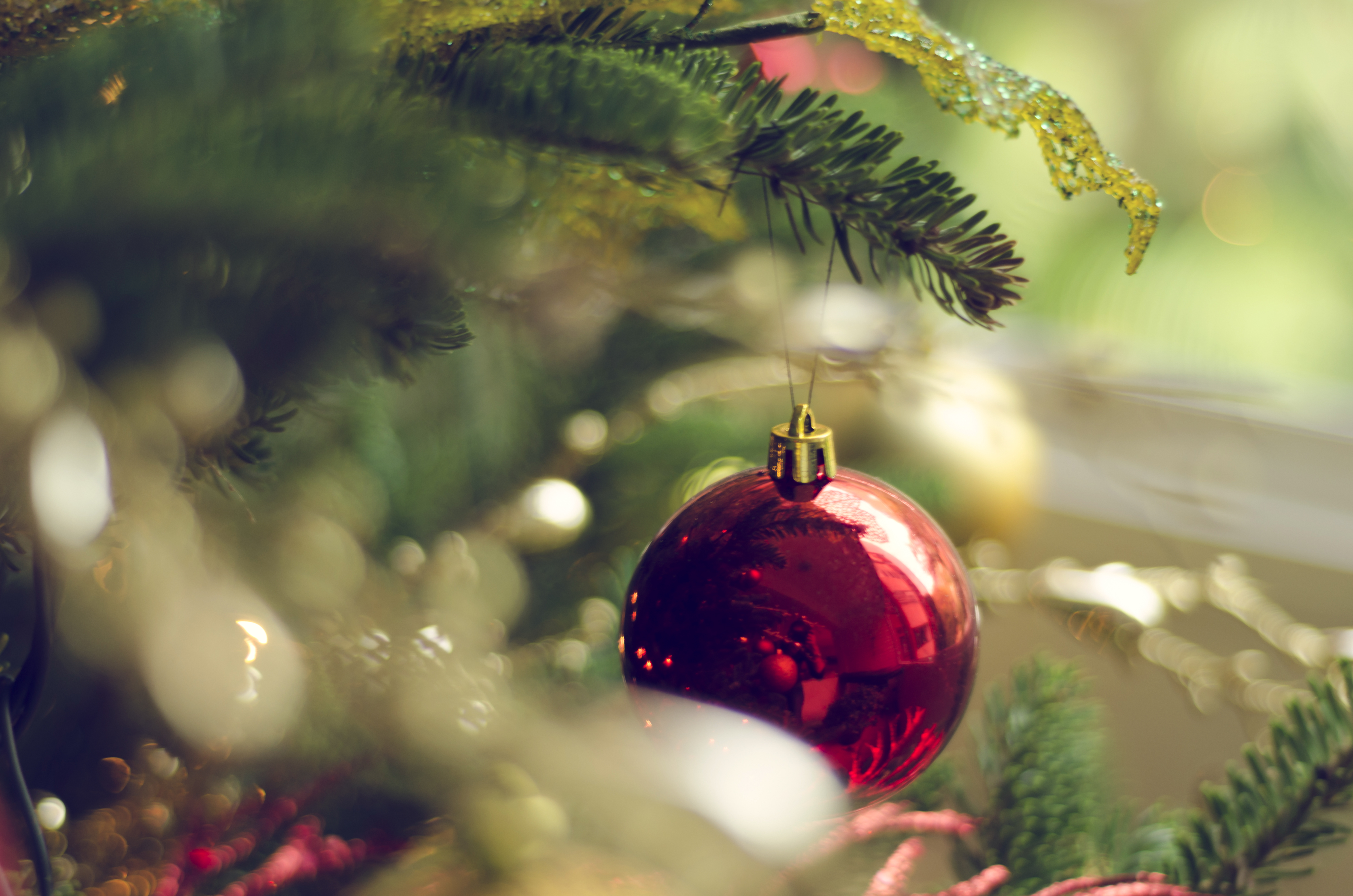 [Bauble fastened to fir tree]