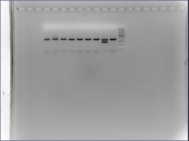 testissä ei löytynyt mykoplasmaa. Liitteissä näytejärjestys ja geelikuva.