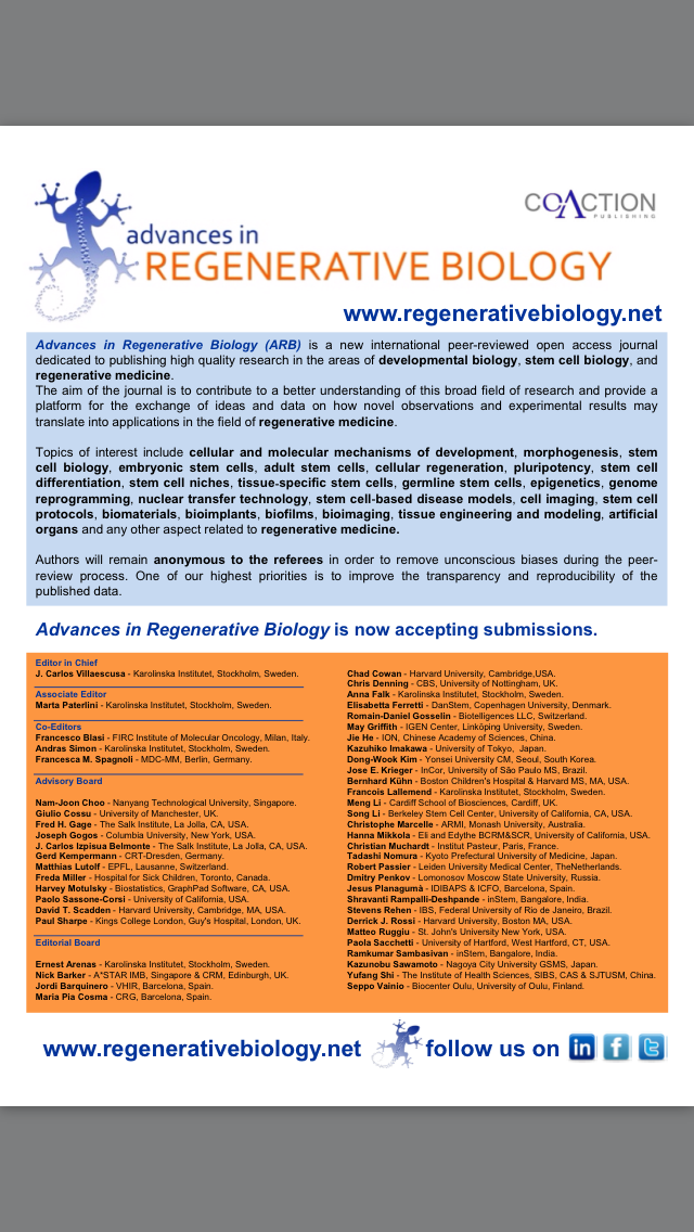 A new journal in "Regenerative Biology" Established - open now for Submissions !