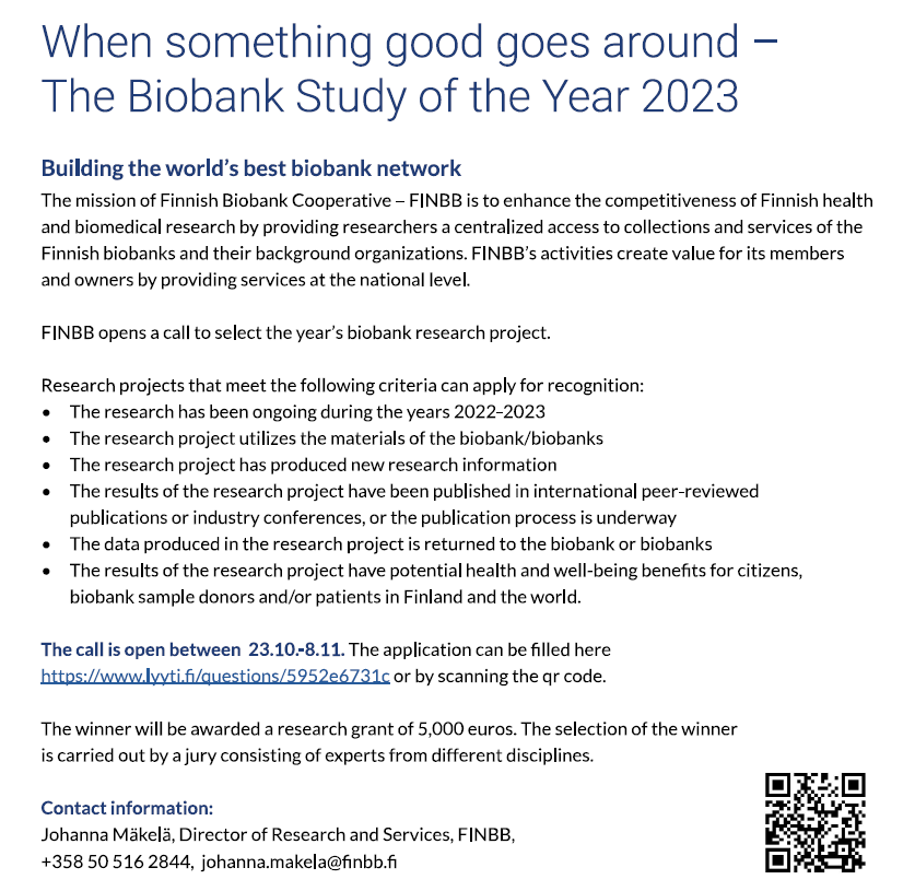 VL: Osallistu Vuoden 2023 biopankkitutkimus -kilpailuun/ Participate to The Biobank study of the year 2023 competition