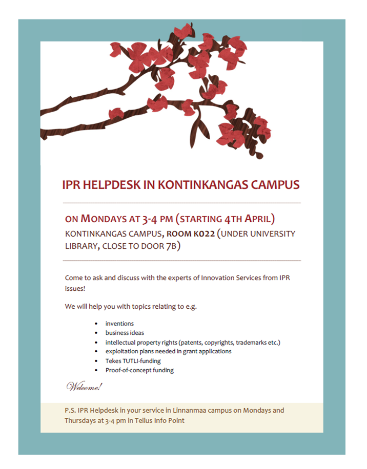 tel. +358-40-355 9660 Internal mail: Maarit Jokela / Innovaatio- ja yrittäjyyspalvelut Room: M207 / Linnanmaa campus