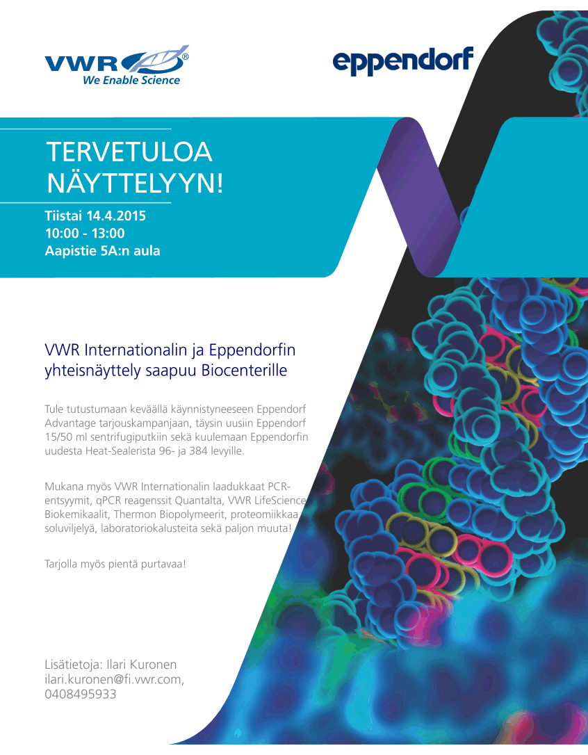 Subject: VWR:n ja Eppendorfin yhteisnäyttely tänään 14.4. Aapistie 5A:n aulassa 10:00 - 13:00