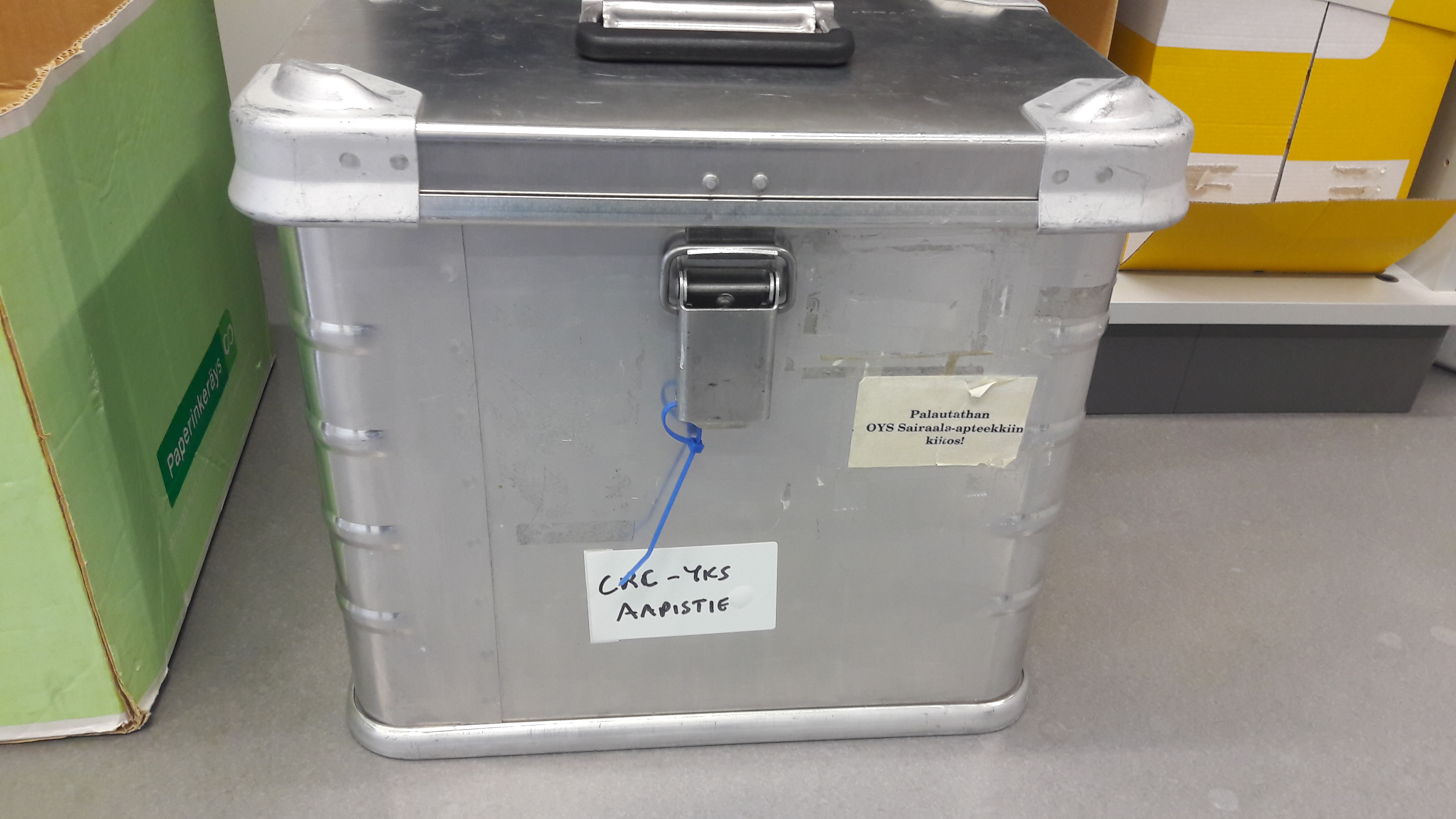 Kiepin 2. kerroksesta tultiin äsken kertomaan, että sinne oli ilmestynyt kuvan mukainen metallinen paketti jossa lukee CRC. Paketti on sinetöity ja aika painava. Sisältää ehkä etanolia? Tunnistaako joku omakseen? Löytyy Haapalaisen Antin toimiston viereisen tulostimen vierestä.
