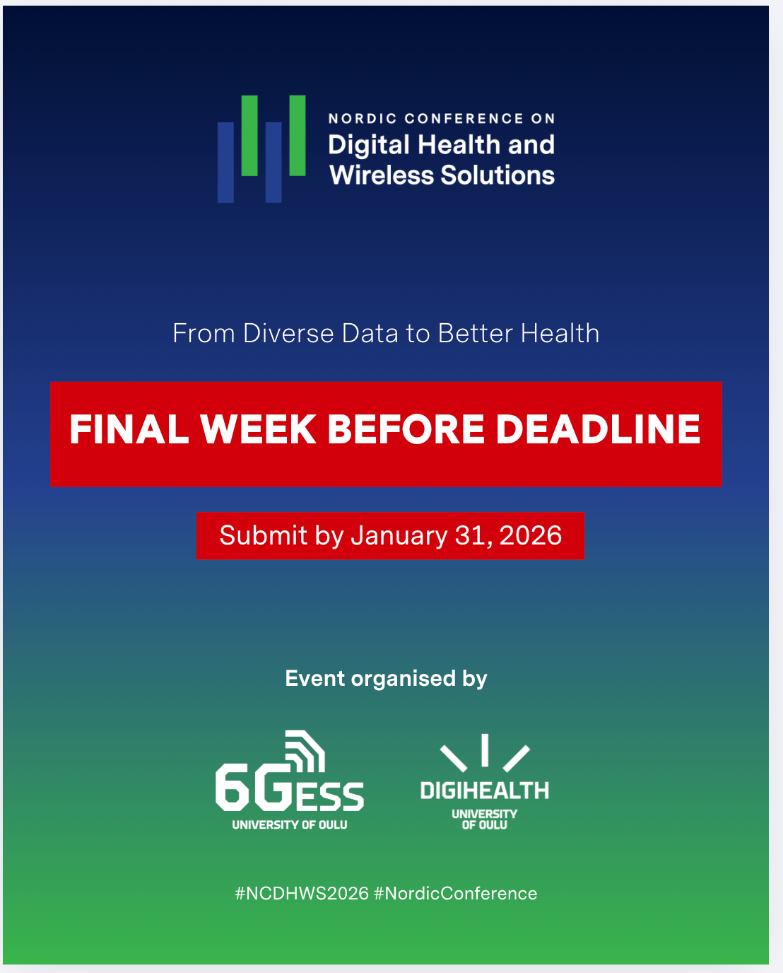 FW: NCDHWS2026: Last week to submit your paper or abstract (including work in progress reports) until January 31st!