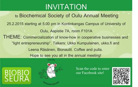 Huom! Bionautit on hiljattain perustettu bioalan ihmisten perustama osuuskunta Helsingin seudulla. Leena Räsänen tulee kertomaan heidän toiminnastaan. Tällaista tilaisuutta ei kannata ohittaa!