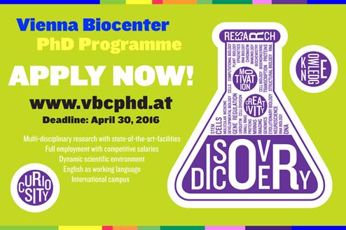 I would be grateful if you could pass on details of the Vienna Biocenter PhD programme to any students that might find it interesting. Further details are available at: www.vbcphd.athttp://www.vbcphd.at