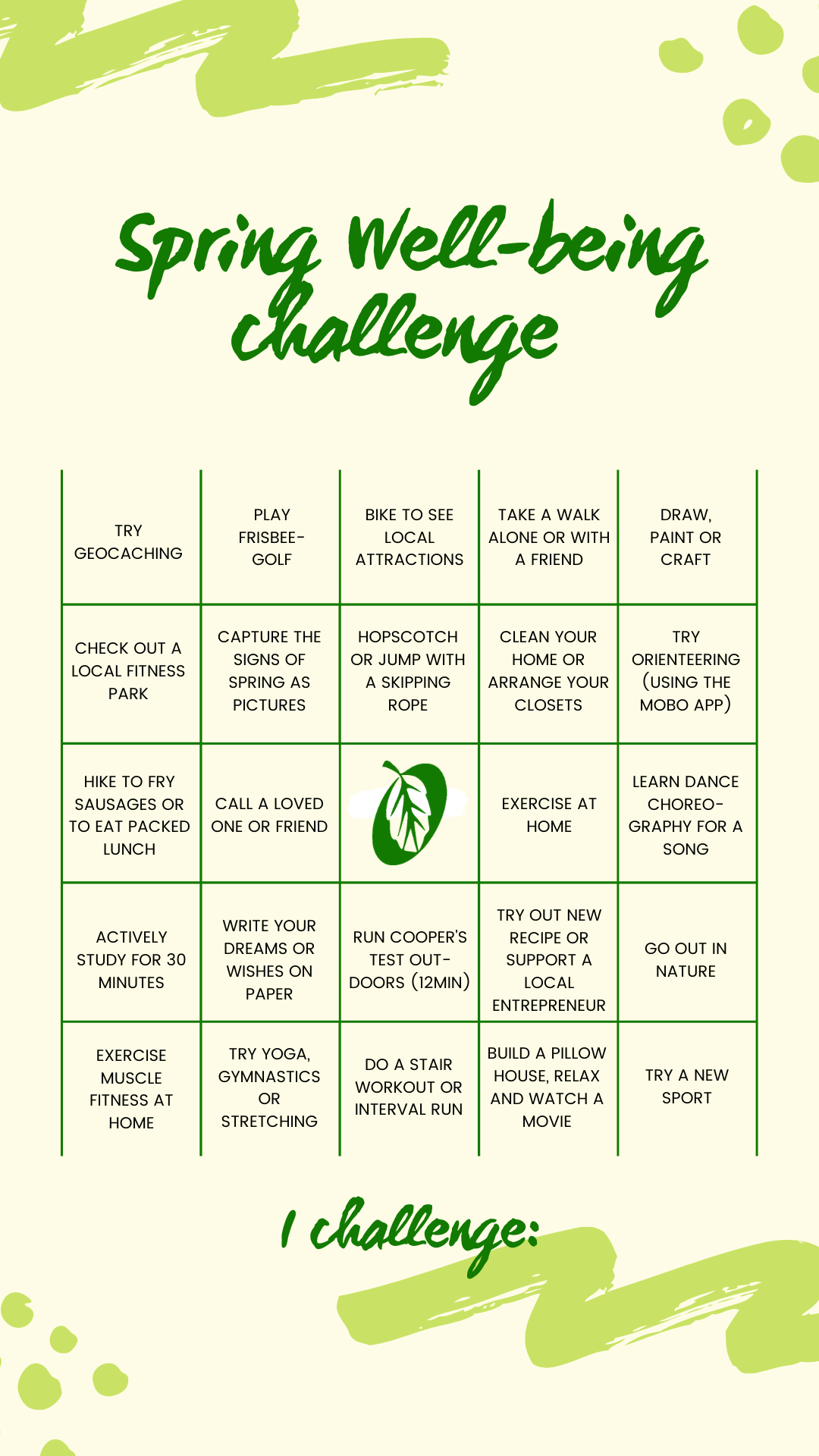 The aim is to brighten up and get some energy in the middle of a busy spring. *The April Well-being Challenge will be held from 1 to 30 April 2021*, during which the focus will be on various aspects of well-being, both mental, social, and physical.