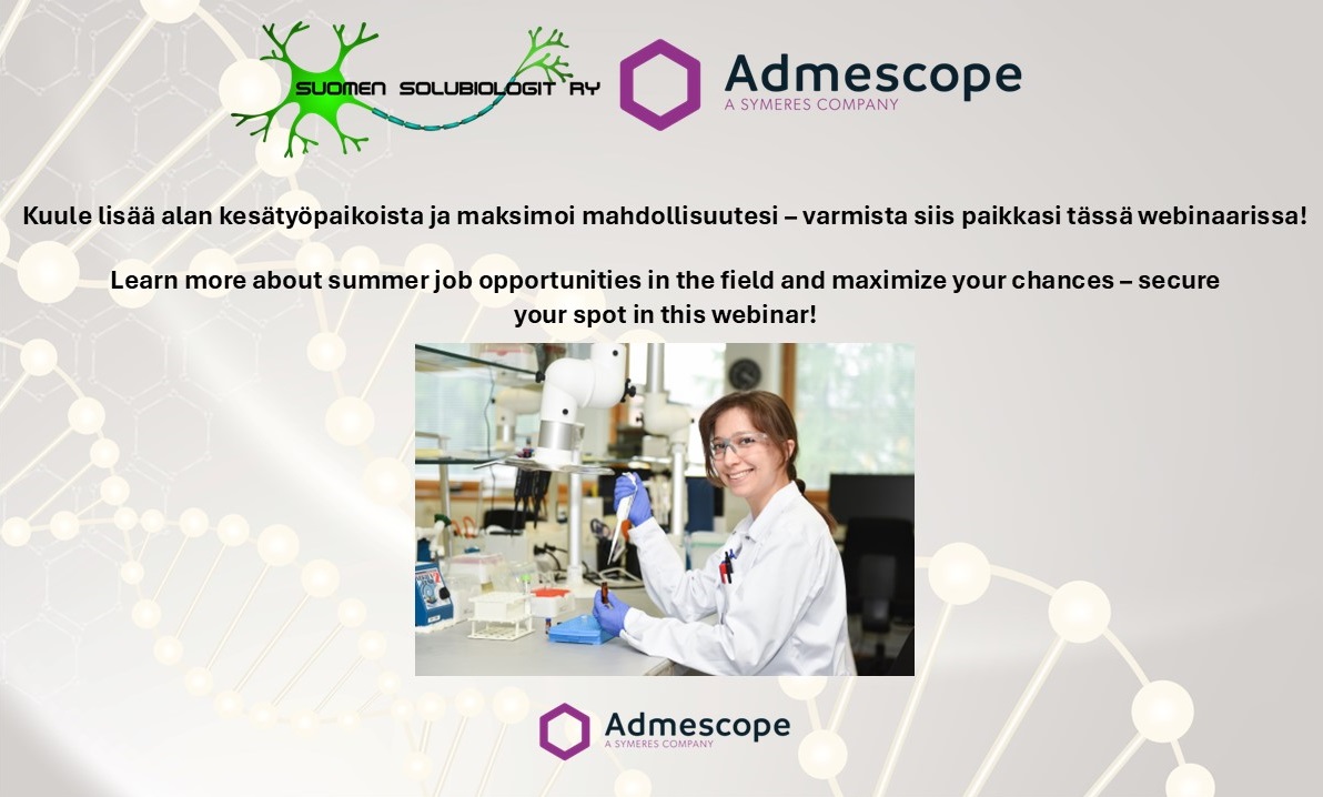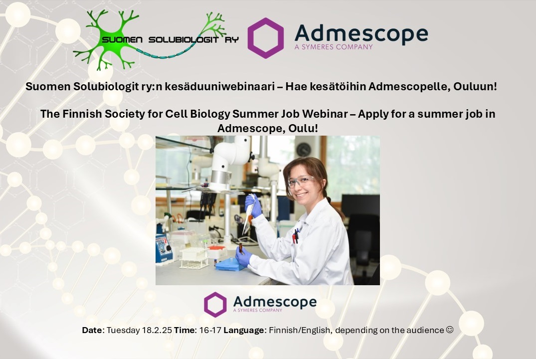 Suomen Solubiologit ry:n kesäduuniwebinaari – Hae kesätöihin Admescopelle! / The Finnish Society for Cell Biology Summer Job Webinar – Apply for a summer job in Admescope!