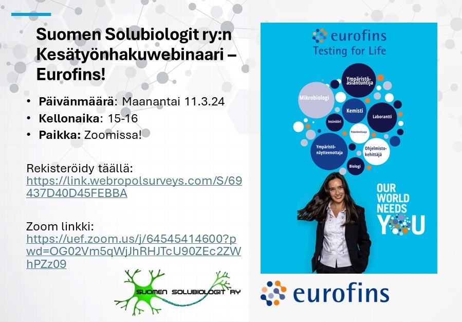 Suomen Solubiologit ry:n kesätyönhakuwebinaari – Hae Eurofins kesätyöpaikkaa!