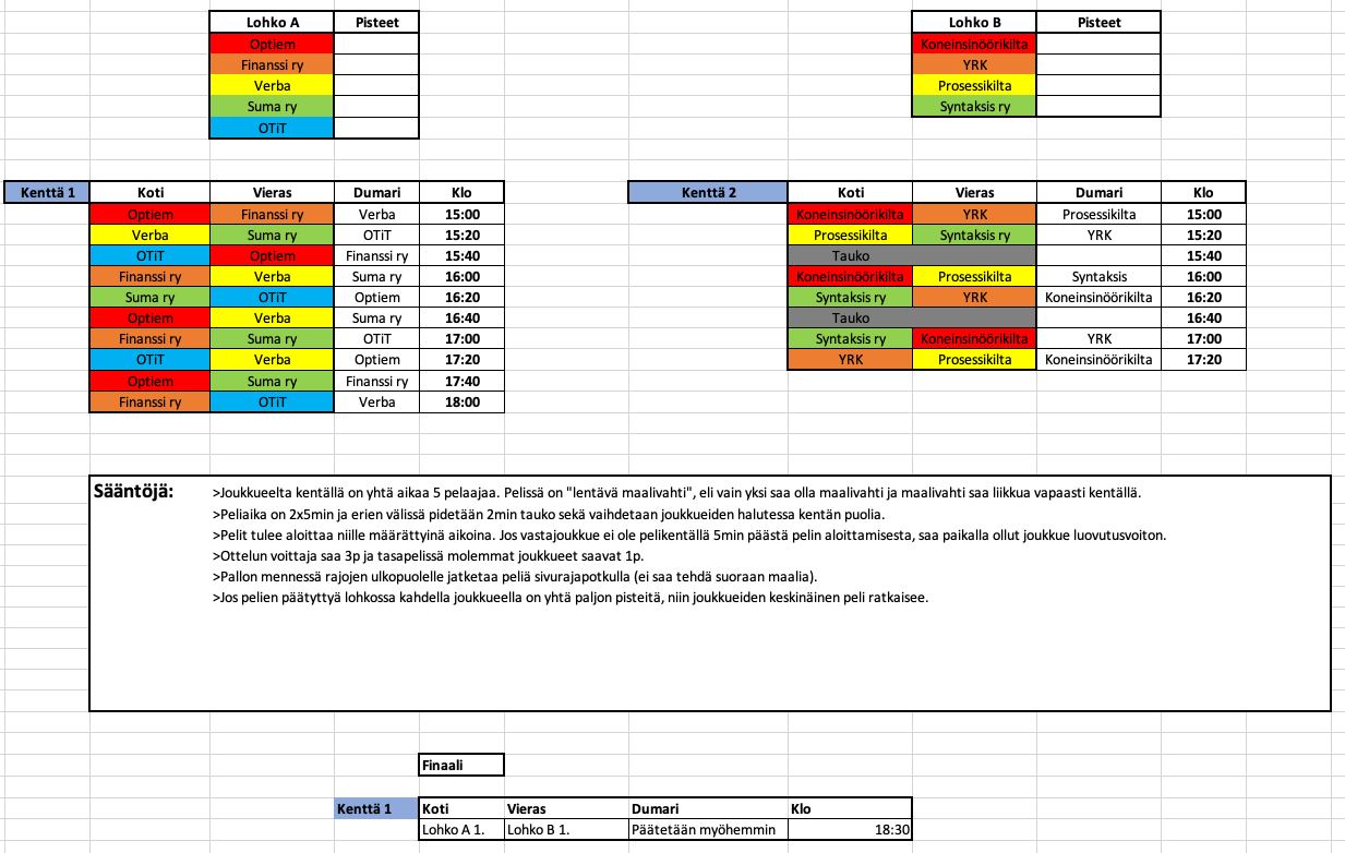 Norsupalloturnauksen otteluohjelman löydät liitteenä! Sen avulla pääset kannustamaan suosikkijoukkueesi voittoon!